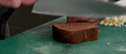 Cut Borodinsky bread into cubes with a side of about 1 cm.