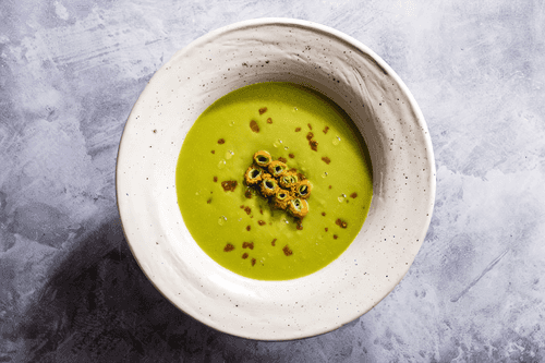 Green peas, in addition to their wonderful sweetish taste, also have a rare texture, which is perfect for cream soups - viscous, flannel, enveloping. By adding baked vegetables and Kakhetian butter to the soup, we will slightly soften the pea confectionery sweetness to moderate. Recipe by Evgeny Gurin, brand chef of the restaurant "Dom Nino" (Samara).