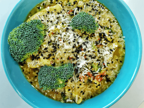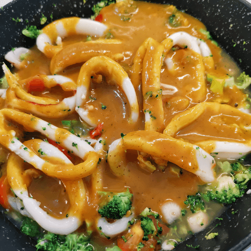 Curry soup with squid and broccoli is a harmonious blend of Eastern spices and seafood, enriched with fresh vegetables. Its taste is multifaceted, rich, and spicy, thanks to the aromatic curry that gently envelops the tender rings of squid and juicy florets of broccoli. The origins of this dish can be found in Asian culinary traditions where curry is the base for many soups and stews. In this recipe, it gains special depth complemented by Parmesan cheese and sesame seeds. This soup not only warms and satisfies but also offers a gastronomic journey into a world of vibrant flavors and exquisite textures. An excellent option for lovers of original cuisine and those seeking unusual combinations in their everyday menu.