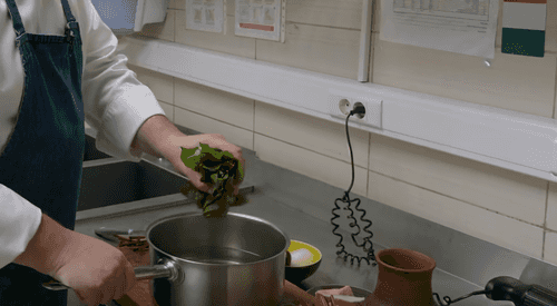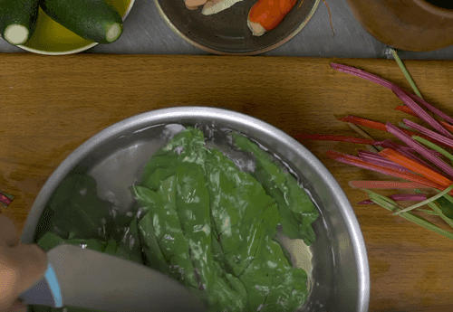 Dip the greens in boiling water and leave for 1 minute.