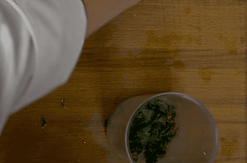 Thoroughly sort, wash, and dry the tops (of turnips, beets, carrots, or Swiss chard leaves).