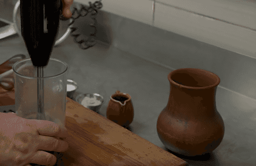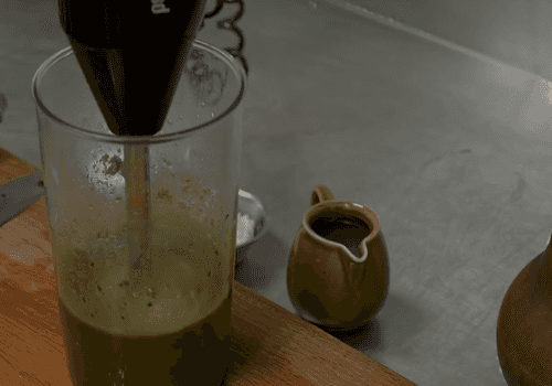 Add kvass and grind everything well to a nearly smooth puree.