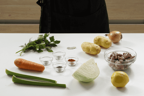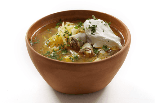 Cabbage soup with chicken hearts