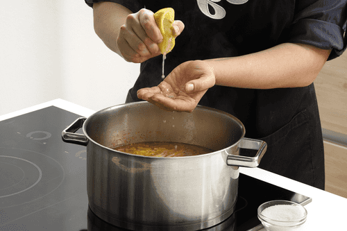 Cook the soup on low heat until the potatoes are soft. At the end, add sugar and lemon juice to taste.