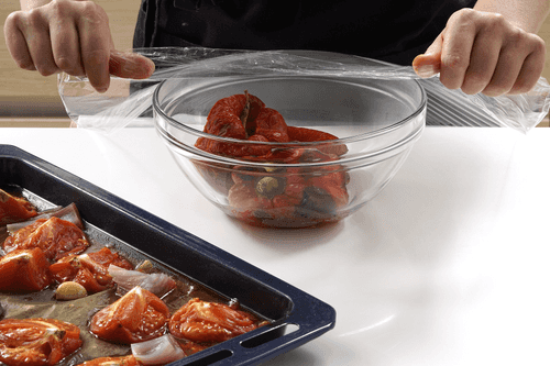 Spray the baking tray with tomatoes with olive oil and cover with foil. Place in a preheated oven at 180 degrees for 35-40 minutes.