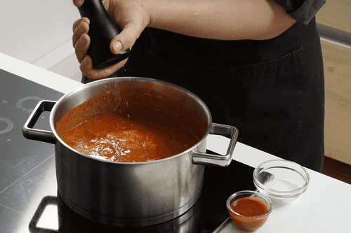 Add hot sauce to the soup.