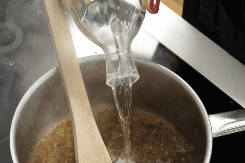Pour in the wine and let it evaporate slightly.