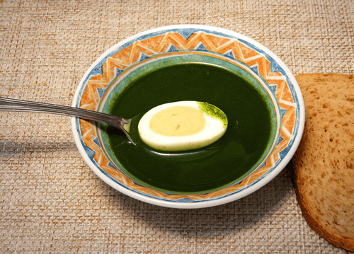 Green shchi with egg is a traditional dish of Russian cuisine, known for its refreshing taste and nutritional value. Its history goes back centuries when greens were used to add a sour note to soups. In this recipe, the combination of sorrel and spinach gives the shchi a characteristic tanginess, while the addition of butter and sour cream makes the flavor softer and richer. A hard-boiled egg adds tenderness and makes the dish even more filling. Green onions and parsley complete the composition with fresh aromatic notes. These shchi are especially good in warm weather when one craves light yet nutritious food and pair excellently with rye bread.