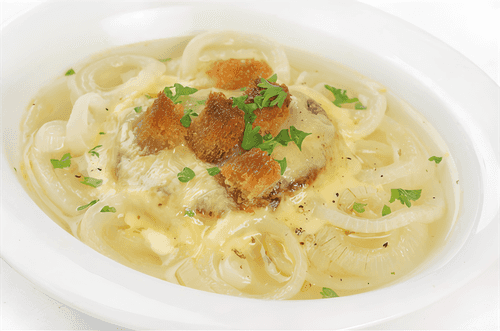 Onion soup with parmesan is a refined dish of European cuisine that combines simplicity and depth of flavor. This soup has a long history, as onion soup has been known since medieval France. Slowly cooked onions acquire caramel sweetness that perfectly complements the rich chicken broth. Flour gives the soup a light thickness, while parsley refreshes the taste. The main feature of the dish is grated parmesan, which adds noble creaminess and a rich aroma to the soup. It is served hot with a separate portion of cheese that melts, enriching each sip. This is not just a soup but a true gastronomic comfort—warming, tender, and rich in European flavors.