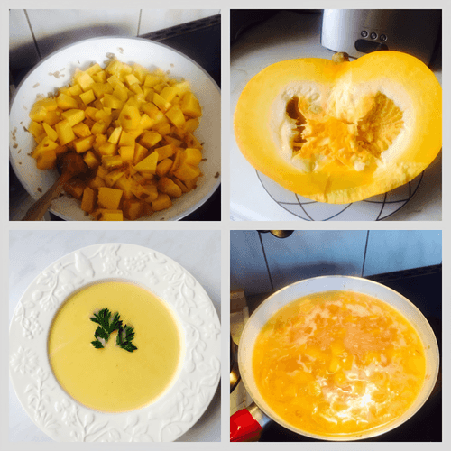 All vegetables need to be cleaned, remove the seeds from the pumpkin, cut it into cubes, just like the potatoes, and chop the leek.