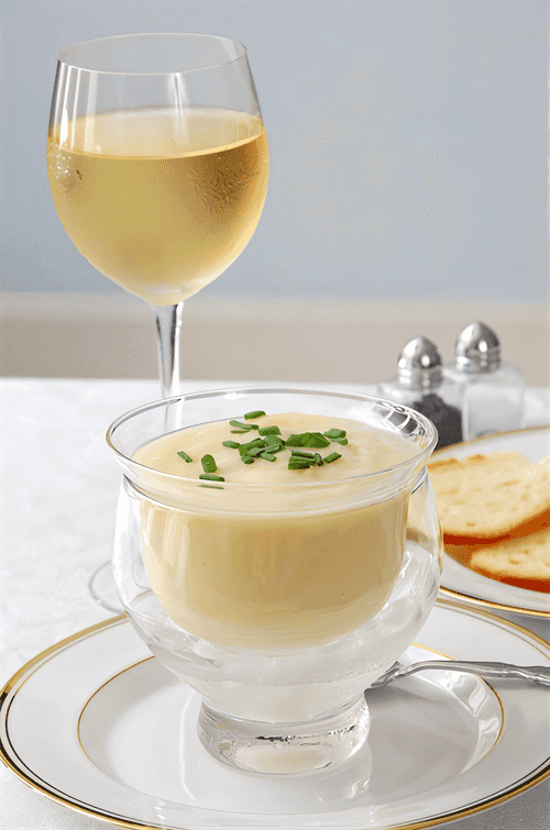 Vichyssoise is a refined French soup that combines the creaminess of dairy with the rich flavors of leeks and potatoes. Its history dates back to the early 20th century when French chef Louis Diat created it in the USA, inspired by traditional soups from his homeland. Served cold, it has a velvety texture and the cream adds softness. This soup is perfect for summer evenings when you crave something refreshing yet flavorful. Vichyssoise is served in glass bowls garnished with herbs, and its subtle aroma of leeks combined with a delicate creamy base makes it a culinary classic. A perfect balance between simplicity and elegance describes this masterpiece of French cuisine.
