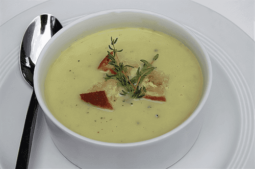 Zucchini puree soup with processed cheese