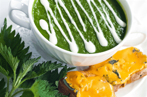Wash the potatoes, peel them, cut into cubes, place in the broth, and boil for 20 minutes. Add the remaining nettle leaves to the soup and make a puree.