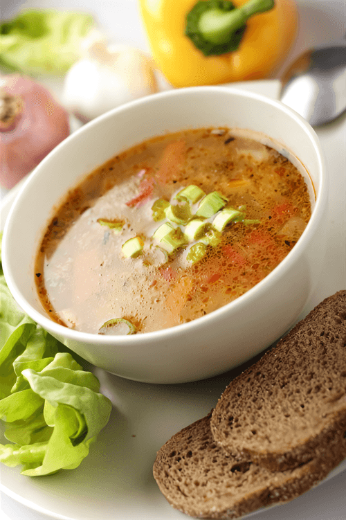 Classic vegetable soup is the embodiment of warmth and comfort in a bowl. Its history roots in the traditions of simple, nourishing dishes where fresh seasonal vegetables are transformed into a rich and aromatic broth. The flavor base is created by sweet carrots, tender artichokes, fresh turnips, and green peas, while lettuce leaves add lightness. The slight saltiness of serrano ham enhances the freshness of the vegetables, and a splash of lemon juice adds a refined tang. This soup is perfect for a spring lunch or cozy dinner, pairs wonderfully with fresh bread and can be complemented with slices of hard-boiled egg for added nourishment. It highlights the beauty of simple ingredients and their harmony, allowing enjoyment in every sip.