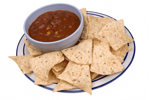 Divide the chili into four plates, add a spoon of sour cream to each, and sprinkle with paprika. Serve with corn chips.