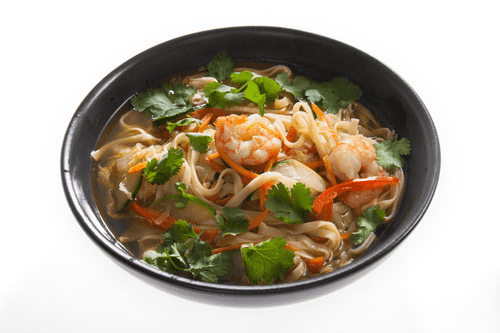 Traditional Filipino pancit soup with egg noodles is a vibrant dish deeply rooted in Filipino culture. Its history originates from Chinese cuisine, but over time Filipinos adapted the recipe by adding unique local ingredients. The light yet rich flavor of pancit combines silky egg noodles, aromatic vegetables, and tender shrimp, all infused with a rich chicken broth. Delicate garlic and ginger notes add warmth, while soy and fish sauces provide a subtle spiciness. It is not just a soup — it symbolizes home comfort and friendly gatherings, often served on festive occasions and family lunches. Garnished with fresh cilantro, it gains freshness and a finishing touch of traditional flavor.