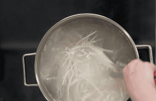 Put the egg noodles in the pot and boil for 40 seconds.