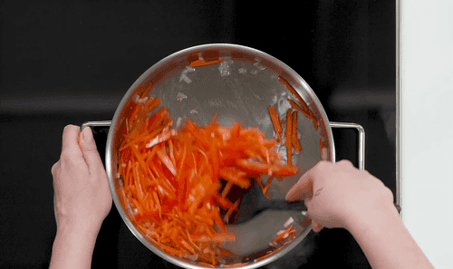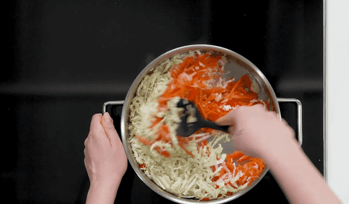 Fry for 3 minutes, stirring intensively with a spatula.