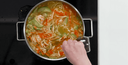 Add egg noodles. Boil for another minute.