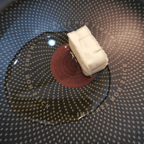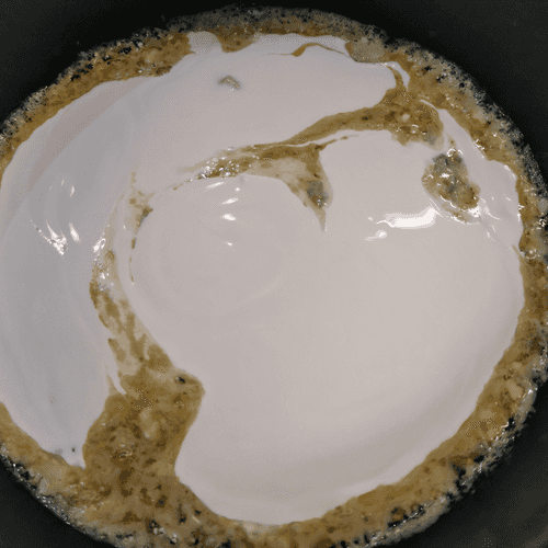 Once the cheese is almost melted, pour in the cream.