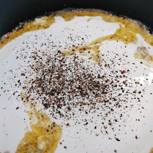 Season with a pepper mix. Stir.