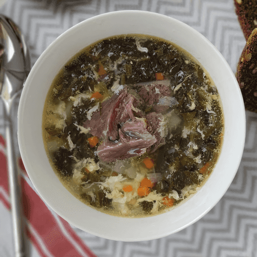 Зелёный борщ из щавеля — это весеннее блюдо русской кухни, которое освежает и наполняет энергией. Его история уходит корнями в традиции крестьянской кухни, когда сезонные продукты играли ключевую роль. Кисловатый вкус щавеля гармонично сочетается с насыщенным мясным бульоном, нежными овощами и легкостью взбитого яйца. Это суп, который согревает, но остается лёгким и питательным. Его принято подавать со сметаной, которая смягчает кислинку, и свежими зелёными травами. Идеален для весеннего периода, когда организм жаждет витаминов и свежести.