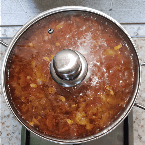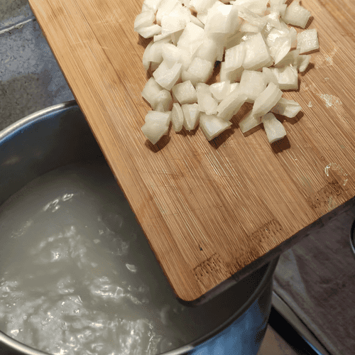 When the broth boils, add 1 chopped onion and cook until the meat is done. The onion will dissolve during this time and give a special aroma to the broth.