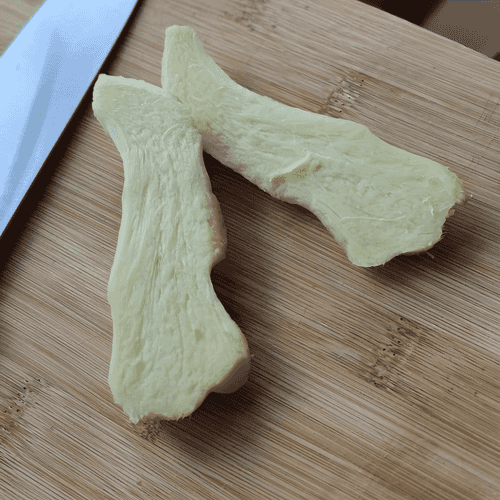 Peel the ginger root and cut it in half.