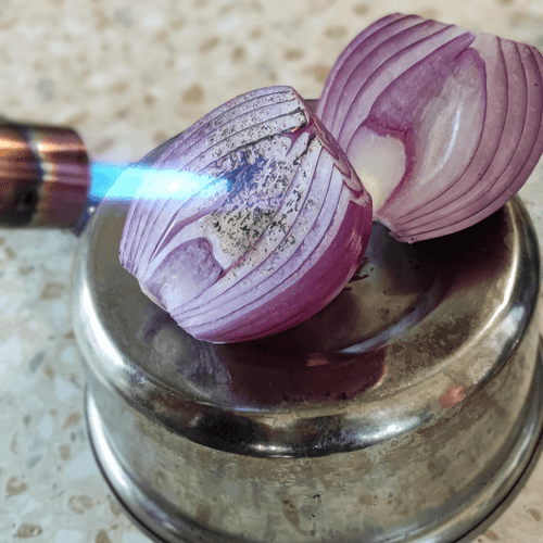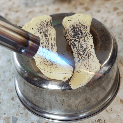 Burn the ginger halves with a torch.