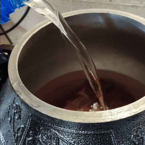 Pour the necessary amount of water depending on your container and boil until the meat is ready.