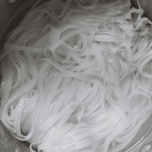 Place the pho noodles in a deep container, pour boiling water over them, and soak for 15-20 minutes.