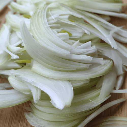 Slice the white onion into thin feathers.