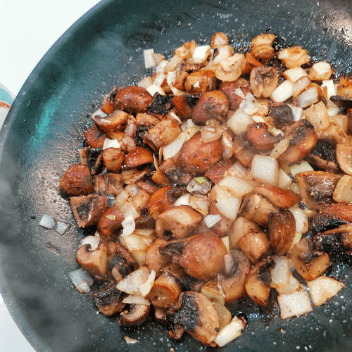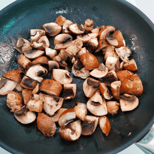 Heat butter and olive oil in a pan and add mushrooms.