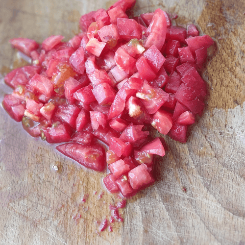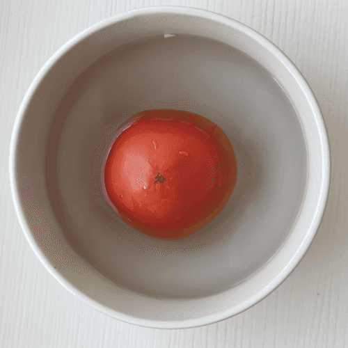 Make a cross-shaped cut on the tomatoes and pour boiling water over them to easily peel the skin.