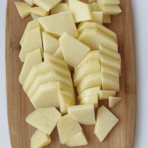 Cut the potatoes into slices of arbitrary shape.