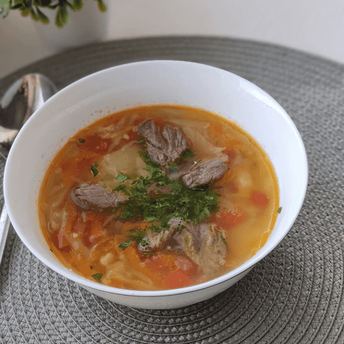 Щи из свежей капусты — душевное блюдо русской кухни, пропитанное традициями и домашним уютом. Этот суп варили в избах сотни лет назад, а его аромат до сих пор ассоциируется с теплом родного дома. Легкая кислинка томатов оттеняет мягкий вкус капусты, а насыщенный говяжий бульон делает щи сытными и согревающими. Золотистая зажарка из моркови и лука придает супу глубину вкуса, а чеснок с черным перцем добавляют пикантную нотку. После краткого настаивания щи становятся еще насыщеннее. Их подают с ржаным хлебом, сметаной или свежей зеленью, что делает вкус более многогранным. Идеальный выбор для холодного дня, когда хочется простого, но одновременно богатого блюда, наполненного ароматами русской кухни.