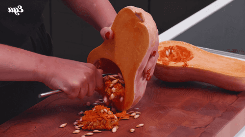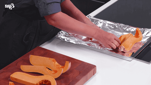 Salt and pepper the pumpkin, add thyme and rosemary sprigs, and drizzle with honey. Place in an oven preheated to 180 degrees for about 30 minutes.
