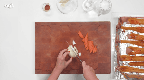 Cut it into sectors and place it on a baking sheet lined with foil.