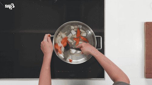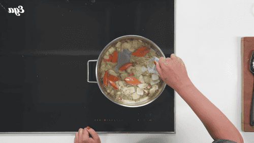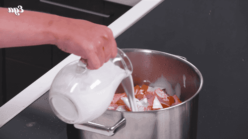 Pour coconut milk over the vegetables and simmer for 15 minutes.