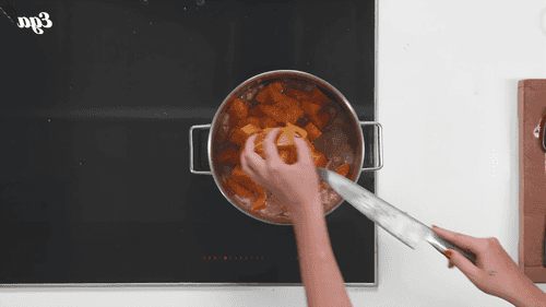 Peel the cooked pumpkin, chop it, and add it to the other vegetables.