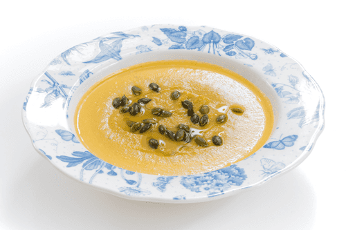 Тыквенный суп с кокосовым молоком — это гармония сладости и пряностей, уносящая вкус в мир уютных осенних вечеров. Запеченная тыква раскрывает всю глубину своего карамельного аромата, а кокосовое молоко придает блюду нежность и бархатистую текстуру. Тимьян и розмарин добавляют тонкие травяные нотки, а имбирь и корица — теплую пряность, превращая каждую ложку в наслаждение. Этот суп стал популярным благодаря экспериментам в авторской кухне, сочетая восточные мотивы и европейские традиции. Идеален в прохладные дни, отлично сочетается с хрустящим хлебом или орехами, а его богатый вкус и польза делают его настоящим кулинарным шедевром.