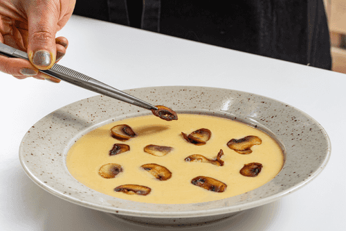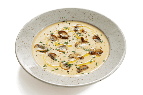 A wonderful recipe that turns cheese soup - seemingly a simple food - into a noble and interesting dish. And there are a lot of mushrooms here: dried porcini, responsible for nobility and character, and champignons, which give the soup weight , and truffle oil, which immediately transfers the Soviet household classic into the category of serious gastronomy.