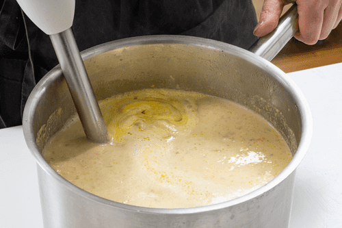 Blend the soup until smooth. Bring to a boil again and remove from heat. Season with salt and pepper if needed.
