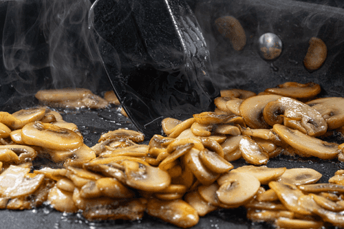 Slice the mushrooms and fry them in a mixture of vegetable and butter until golden brown.