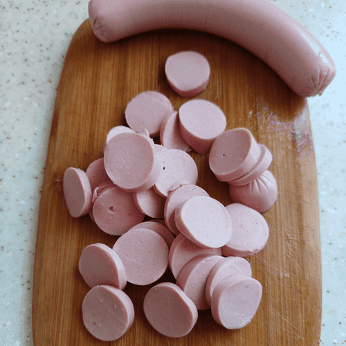 Randomly slice the sausage. Put all ingredients into the pot with broth. Boil for 5-7 minutes.