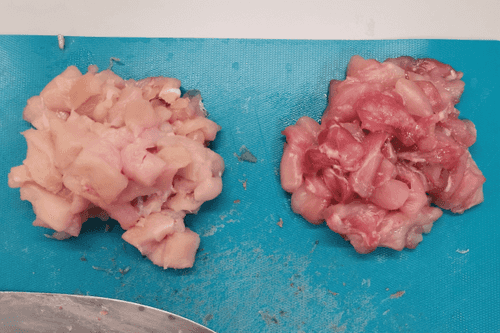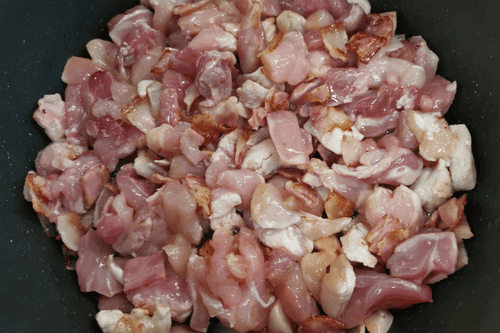 Cut the chicken into cubes.
