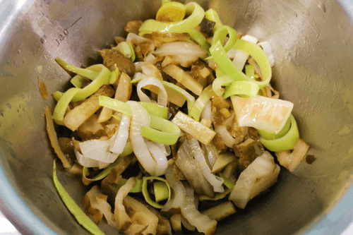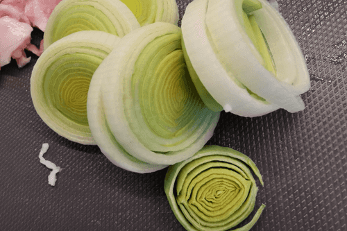 Slice the leek into rings.