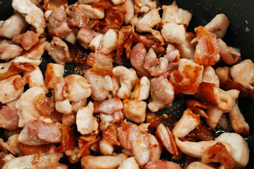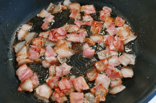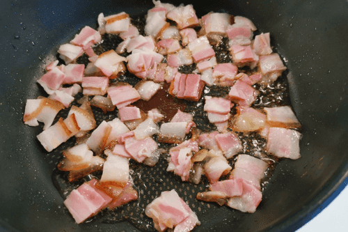 Fry the bacon for 3-4 minutes over high heat, stirring occasionally.
