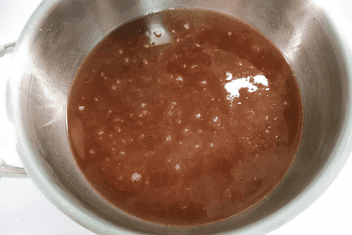 After a couple of minutes, add tomato juice and chili sauce.