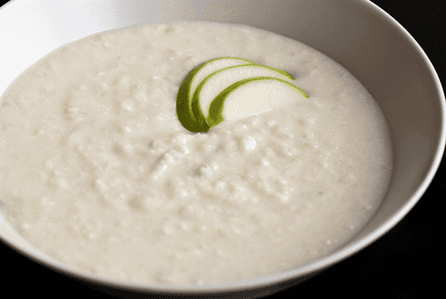 Cool the soup and strain it through a sieve. Pour into a soup bowl, add cream, salt, and pepper. Mix until smooth.